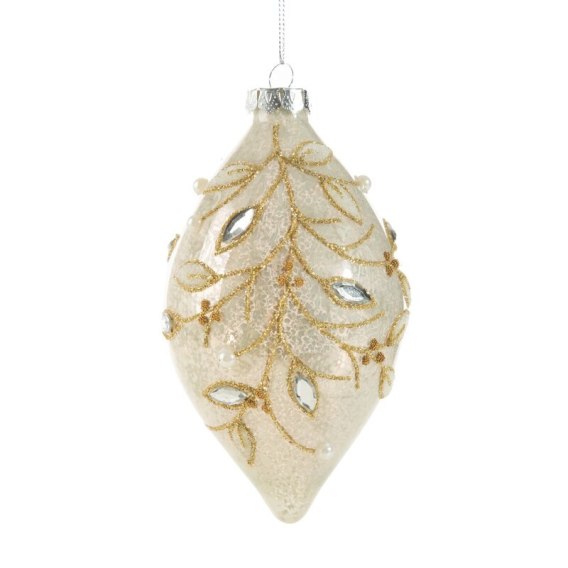 BOMBKA CHOINKOWA SZKLANA 8 X 14 CM BIAŁY