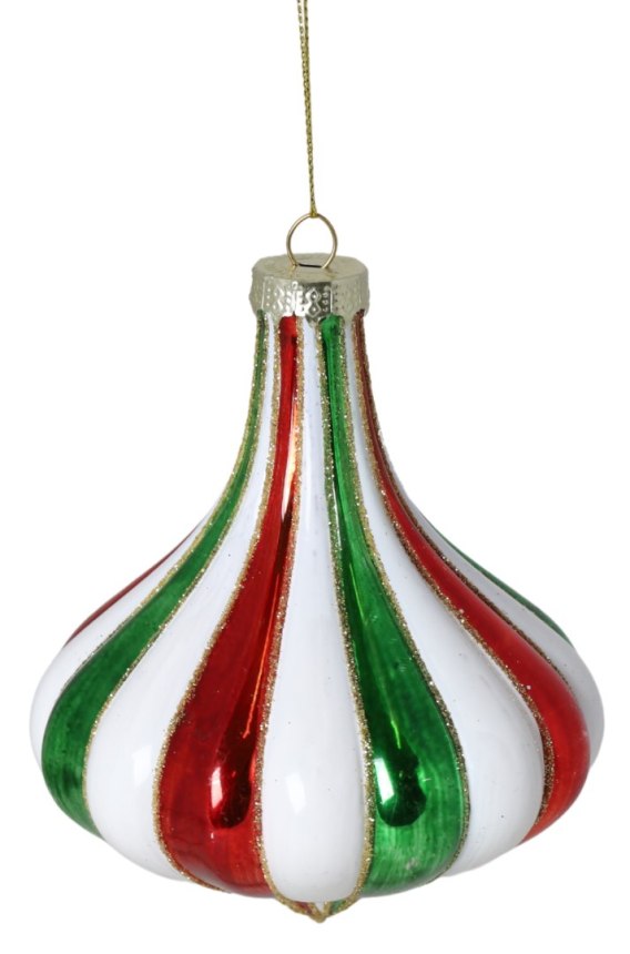 BOMBKA SZKLANA BIAŁO-CZERWONO-ZIELONA