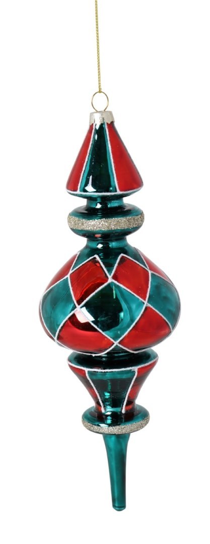 BOMBKA SZKLANA ZIELONO-CZERWONA DUŻA