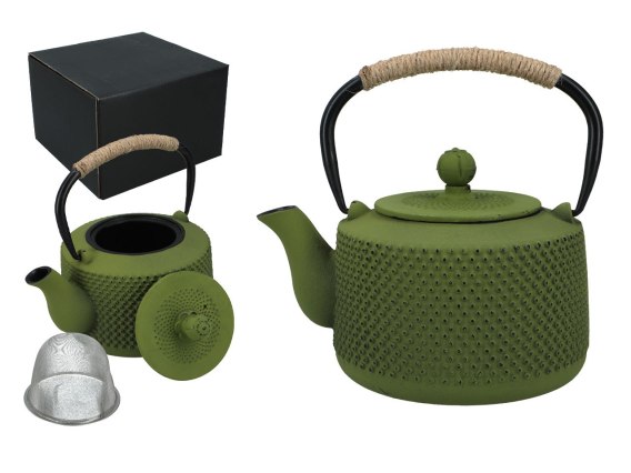 Czajniczek żeliwny z emaliowanym wkładem.