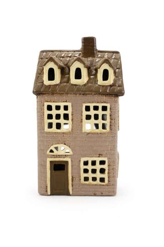 DOMEK CERAMICZNY NA T-LIGHT BEŻOWY Z BRĄZOWYM DACHEM