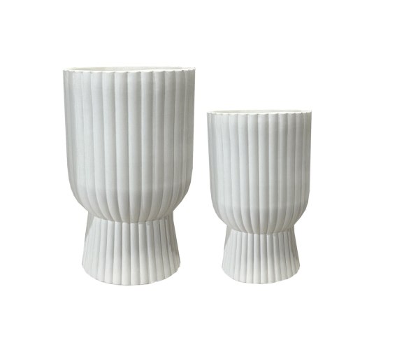 HEVRA Komplet 2 osłonek to stylowy zestaw donic dekoracyjnychktóry doskonale łączynowoczesny design z naturalną estetyką. W skład kompletu wchodzą dwie osłonki o różnych rozmiarach: największa owymiarach 35x35x56cm i 25x25x40cm. Każda z nich została wykonana z gliny włóknistej, znanej również jako fiber clay .To nowoczesny materiał, który łączy w sobie trwałość, lekkość i odporność na warunki atmosferyczne, a przy tym zachowuje szlachetny, surowy wygląd ceramiki.Powierzchnia osłonek jest matowa, lekko porowata, co nadaje im rustykalnego charakteru i sprawia, że doskonale komponują się z zielenią roślin. Prosta forma i oszczędny styl sprawiają, że pasują zarówno do wnętrz nowoczesnych,loftowych, jak i bardziej naturalnych aranżacji inspirowanych stylem skandynawskimczy śródziemnomorskim. Podstawy, na których umieszczone są donice, dodają im lekkości i elegancji, a jednocześnie podnoszą kompozycje kwiatowe, eksponując je wprzestrzeni.To praktyczne i dekoracyjne rozwiązanie dla osób, które cenią sobie trwałość materiałów, estetykę formy i wygodę użytkowania . zarówno we wnętrzach, jak i na tarasach czy balkonach. Osłonka mrozoodporna.wymiary: XL:35x35x56cm L: 25x25x40cm