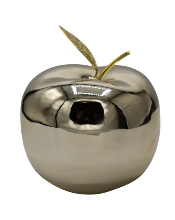 JABŁKO CERAMICZNE Z METALOWYM LISTKIEM ZŁOTE