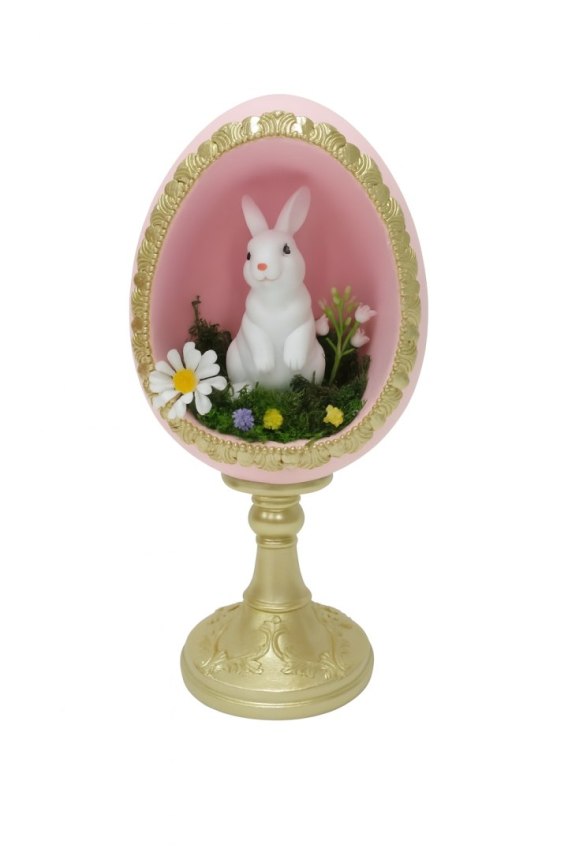 JAJKO CERAMICZNE RÓŻOWE Z KRÓLICZKIEM NA ZŁOTYM POSTUMENCIE