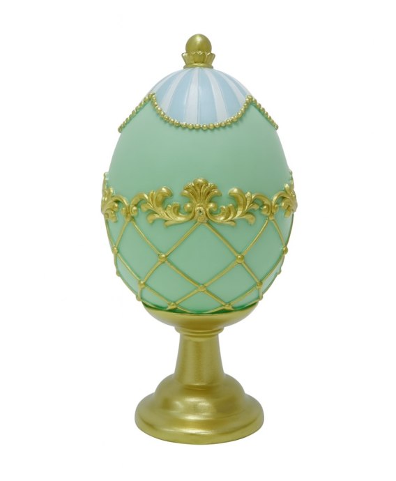 JAJKO CERAMICZNE ZIELONO-BŁĘKITNE NA ZŁOTYM POSTUMENCIE