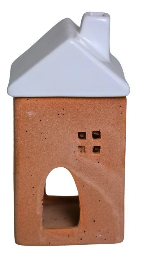 KOMINEK NA OLEJEK ZAPACHOWY CERAMICZNY DOMEK Z BIAŁYM DACHEM