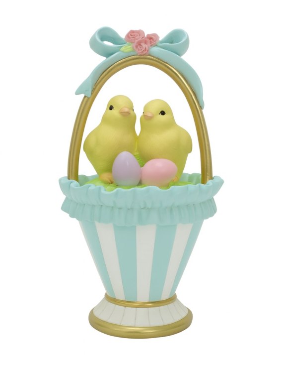 KOSZYCZEK CERAMICZNY BIAŁO-BŁĘKITNY Z KURCZACZKAMI