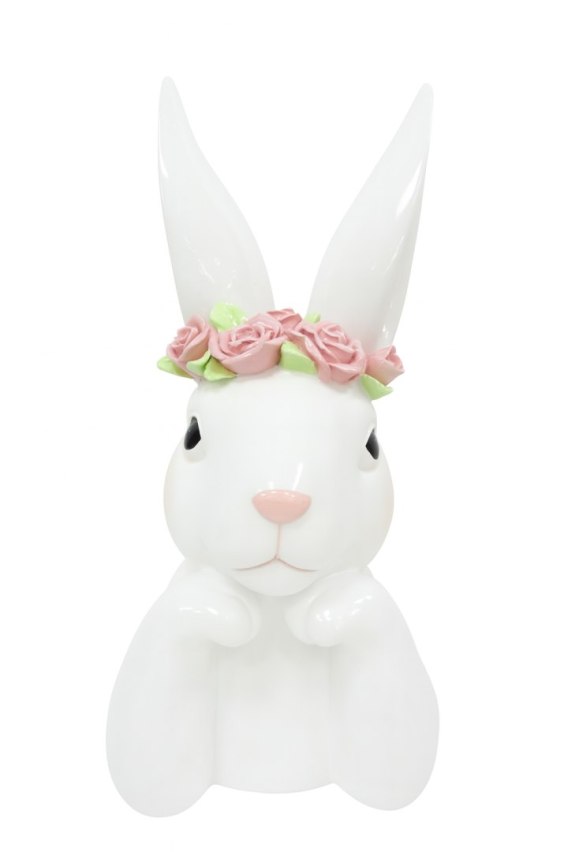 KRÓLIK CERAMICZNY BIAŁY Z RÓŻOWYM WIANUSZKIEM