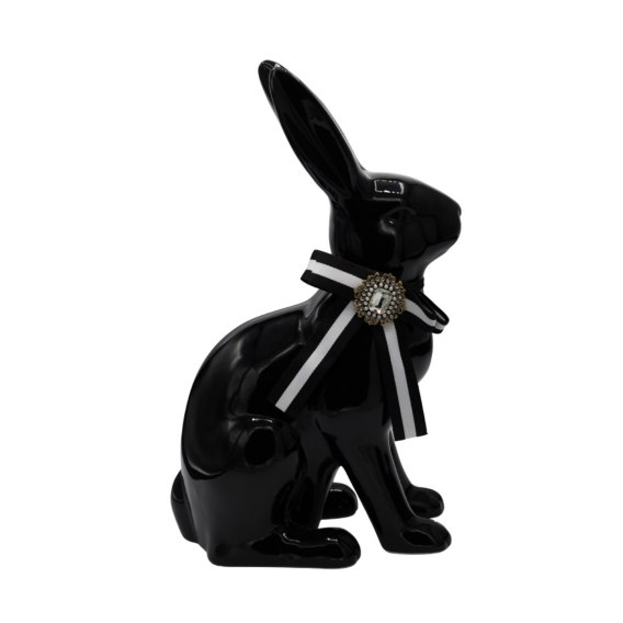 KRÓLIK CERAMICZNY CZARNY Z CZARNO-BIAŁĄ KOKARDĄ DUŻY