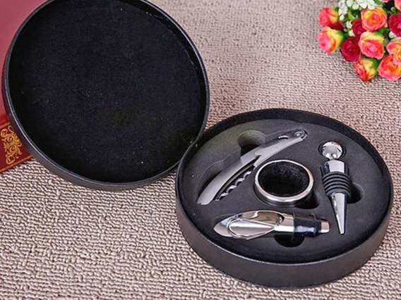 Kpl. do otwierania wina w okrągłym pudełku (4 elementy)
