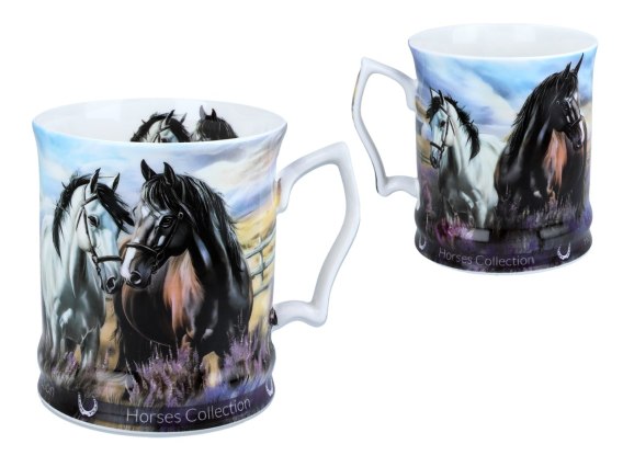 Konie w galopie to symbol wolności. Zmierzwione grzywy przywołują na myśl wiatr, przestrzeń i dziką naturę ? tę nieokiełznaną energię, którą każdy z nas nosi w sobie. Te wszystkie wrażenia zamknęliśmy w dekoracji kubka z porcelany bone china. -