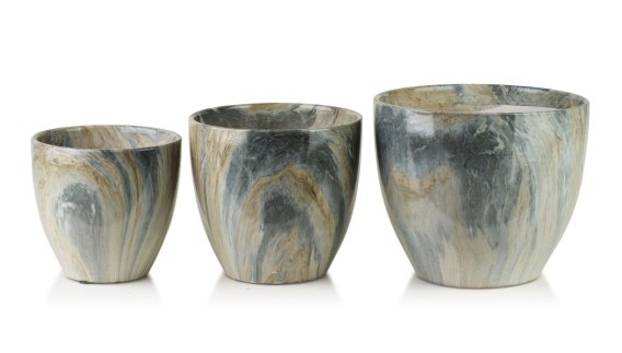 Ceramiczne osłonki w trzech rozmiarach z kolekcji NEVA MARBLE, marmurowe wykończenie w kolorystyce szarej i beżowej.Komplet trzech ceramicznych osłonek z kolekcji NEVA MARBLE to stylowy zestaw donic dekoracyjnych, które wyróżniają się eleganckim, marmurowym wykończeniem w odcieniach szarości i beżu. Ich subtelna kolorystyka oraz delikatne przejścia barw nadają im wyrafinowany i naturalny wygląd, doskonale wpisujący się w nowoczesne, klasyczne oraz minimalistyczne aranżacje wnętrz.Osłonki wykonane są z wysokiej jakości ceramiki, co gwarantuje ich trwałość, stabilność i odporność na codzienne użytkowanie. Gładka, błyszcząca powierzchnia nie tylko podkreśla efekt marmuru, ale również ułatwia utrzymanie czystości. Dzięki solidnemu wykonaniu i eleganckiemu designowi stanowią one nie tylko praktyczny, lecz także dekoracyjny element wnętrza.Zestaw obejmuje trzy osłonki o wymiarach:25x25x21 cm, 20,5x20,5x18 cm oraz 16x16x15 cm, co pozwala na stworzenie harmonijnej kompozycji z różnymi gatunkami roślin. Doskonale prezentują się zarówno w salonie, sypialni, jak i w przestrzeniach biurowych.Komplet NEVA MARBLE to idealny wybór dla osób ceniących elegancję, prostotę i naturalne inspiracje. Marmurowe wykończenie w ciepłej tonacji szaro-beżowej wprowadza do wnętrza nutę luksusu i spokoju, tworząc stylową oprawę dla zielonych roślin i kwiatów.