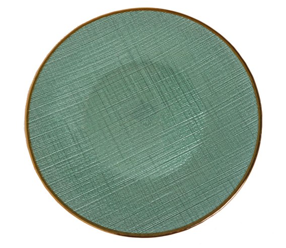 PODTALERZ SZKLANY ZIELONY ZE ZŁOTYM BRZEGIEM