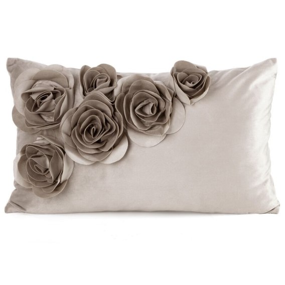 Welwetowa poszewka dekoracyjna z aplikacją w kształcie róż szerokość: 30 cm, długość: 50 cm, kolor: beżowy, Gramatura: 200 GSM, Skład: 100% poliester