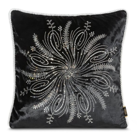 Poduszka velvetowa z kryształkami szerokość: 45 cm, długość: 45 cm, kolor: czarny, Gramatura: 340 GSM, Skład: 100% poliester
