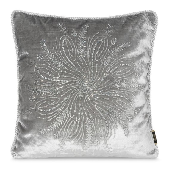 Poduszka velvetowa z kryształkami szerokość: 45 cm, długość: 45 cm, kolor: srebrny, Gramatura: 340 GSM, Skład: 100% poliester