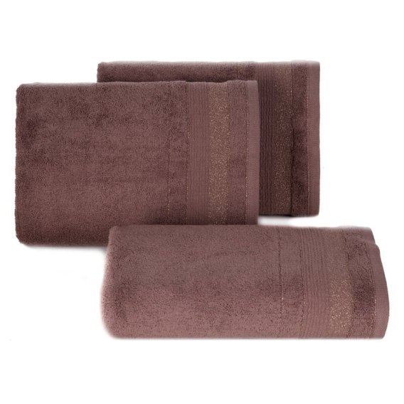 Ręcznik bawełniany z żakardową bordiurą z błyszczącą nicią szerokość: 50 cm, długość: 90 cm, kolor: jasnobrązowy, Gramatura: 500 GSM, Skład: 100% bawełna; część ozdobna: 95% bawełna, 5% poliester