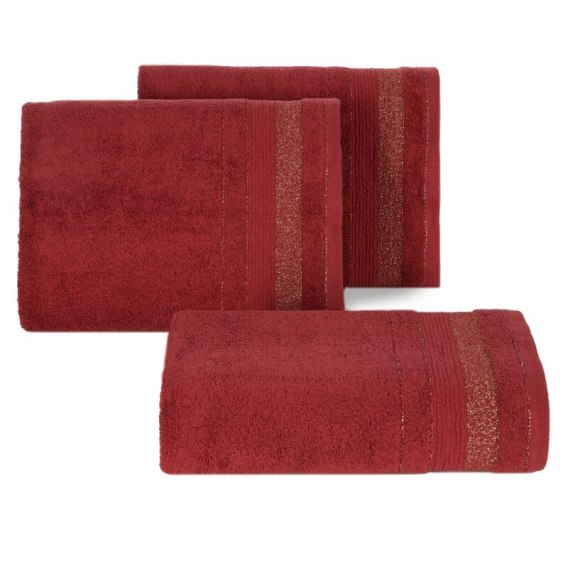 Ręcznik bawełniany z żakardową bordiurą z błyszczącą nicią szerokość: 30 cm, długość: 50 cm, kolor: bordowy, Gramatura: 500 GSM, Skład: 100% bawełna; część ozdobna: 95% bawełna, 5% poliester