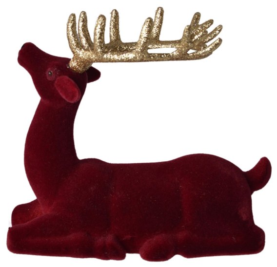 RENIFER WELUROWY LEŻĄCY BURGUNDOWY