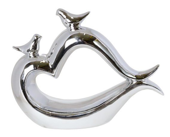 SERCE CERAMICZNE SREBRNE Z PTASZKAMI
