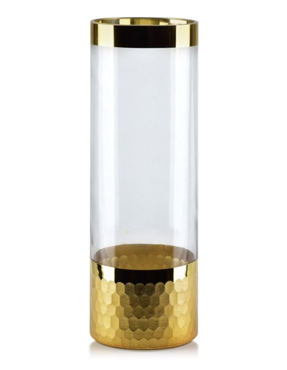 Wazon szklany Serenite marki MONDEX since 1986r. Utrzymany w kolorystyce przeźroczystej ze złotą kalką u nasadu wazonu oraz w dolnej części z łuskami złota. Przepiękny i nowoczesny. W dzisiejszych czasach wazon to nietylko naczynie na kwiaty, ale także wyjątkowa ozdoba wnętrza. Świeże cięte kwiaty, a także sztuczne sprawiają, że wnętrze jest przyjemniejsze i w niektórych przypadkach może mieć duży wpływ na nasze nastawienie. Kwiaty są zawsze dobrym pomysłem na prezent, a na pewno sprawią dużo radości wręczone wraz z wazonem. Kolekcja SERENITE została stworzona aby umilać codzienność, wyjątkowy kształt wazonów, a także ich kolorystyka świetnie wpisują się w trendy, a zarazem są ponadczasowe. Nowe szkło do domu to zawsze dobry pomysł.Tak niewiele trzeba, abystół, komoda czy szafka nocna nabrały innego wymiaru i cieszyły oko.Warto zawszełączyć poszczególne elementy kolekcji ze sobą. wymiary: 10xh29,8cm biały kartonik: 10x10xh30,5cm średnica otworu: 9,5cmwaga:624g