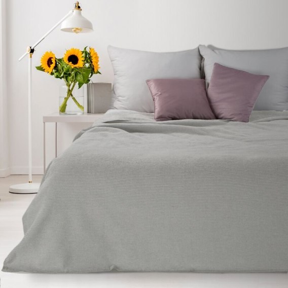Koc bardzo miękki w dotyku, o strukturze waflowej szerokość: 200 cm, długość: 220 cm, kolor: szary, Gramatura: 345 GSM GSM, Skład: 50% bawełna, 30% poliester, 20% akryl