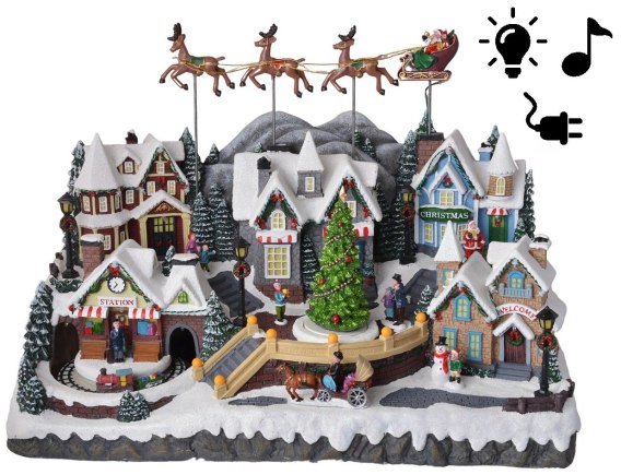 ŚWIĄTECZNE MIASTECZKO LED Z POCIĄGIEM I ZASILACZEM