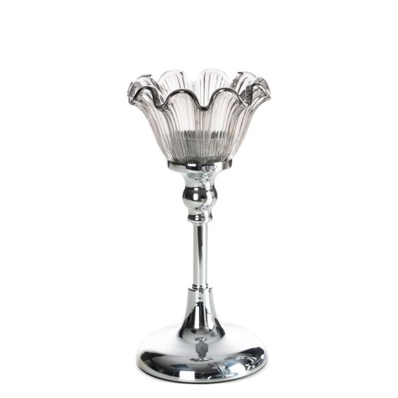 ŚWIECZNIK DEKORACYJNY ADENA (02) O 11 X 22 CM SREBRNY