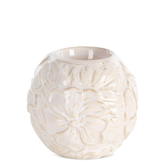 Świecznik dekorayjny szerokość: O 10 cm, długość: 10 cm, kolor: kremowy, Skład: 100% glinka ceramiczna