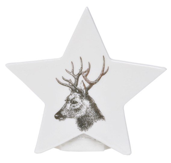 ŚWIECZNIK PORCELANOWY GWIAZDKA Z RENIFEREM