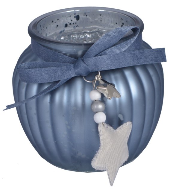 ŚWIECZNIK SZKLANY NIEBIESKI MAT Z GWIAZDĄ