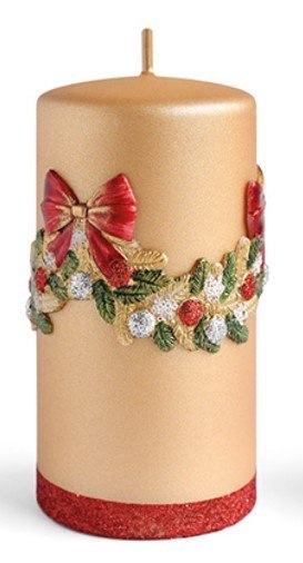 Świeca GIRLANDA Aplikacja walec średni 7xh14cm złota parafinowa