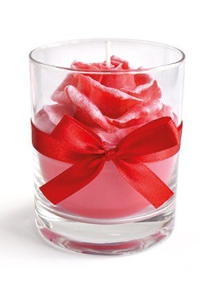Świeca RÓŻA walec mały 8x9,5cm w szkleczerwona woskowa