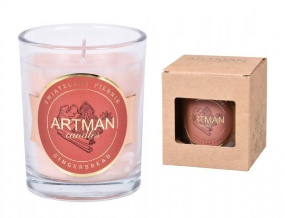 Świeca RUSTIC ZIMOWY w szkle woskowa piaskowa 8xh10cm