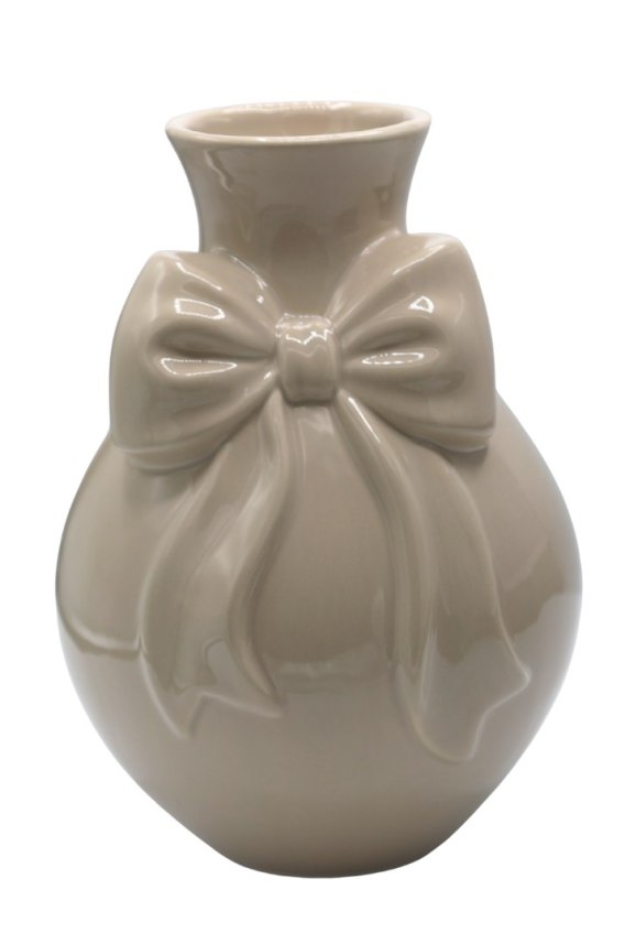 WAZON CERAMICZNY BEŻOWY Z BEŻOWĄ KOKARDĄ MAŁY