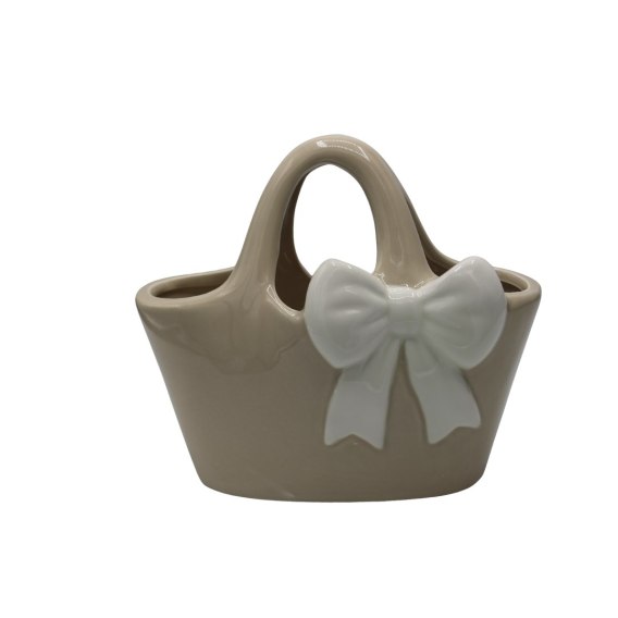 WAZON CERAMICZNY TOREBKA BEŻOWA Z BIAŁĄ KOKARDĄ
