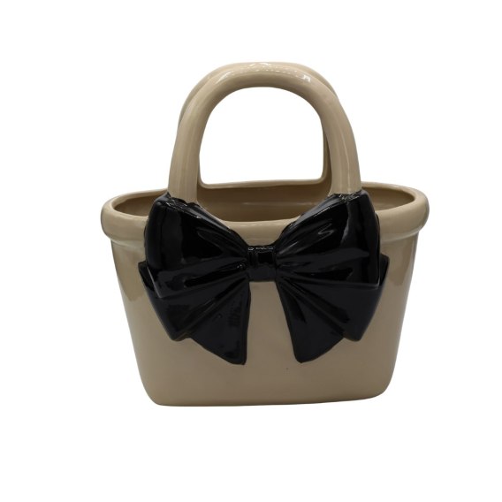 WAZON CERAMICZNY TOREBKA BEŻOWA Z CZARNĄ KOKARDĄ DUŻA