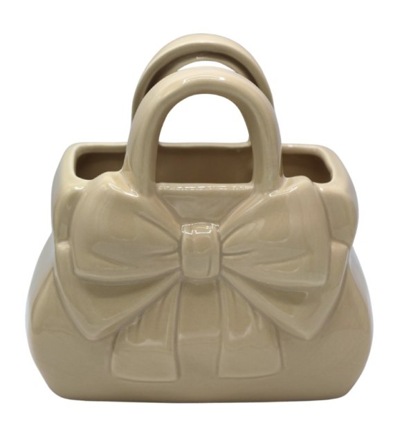 WAZON CERAMICZNY TOREBKA BEŻOWA Z KOKARDĄ