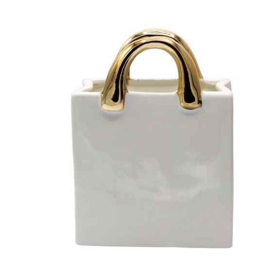 WAZON CERAMICZNY TOREBKA BIAŁA ZE ZŁTYMI RĄCZKAMI MAŁA
