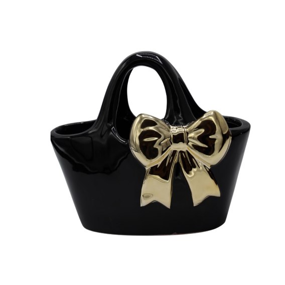 WAZON CERAMICZNY TOREBKA CZARNA ZE ZŁOTĄ KOKARDĄ