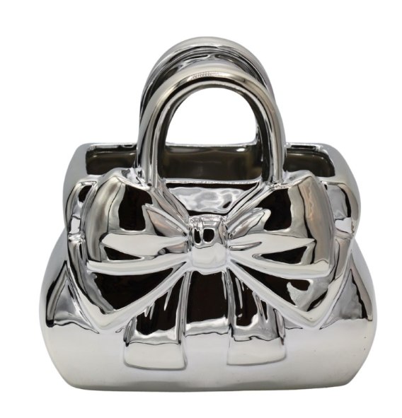 WAZON CERAMICZNY TOREBKA SREBRNA Z KOKARDĄ