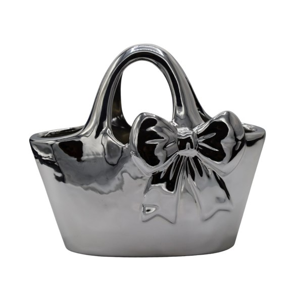 WAZON CERAMICZNY TOREBKA SREBRNA Z KOKARDĄ