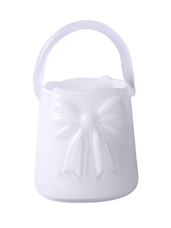 WAZON SZKLANY TOREBKA BIAŁA Z KOKARDĄ